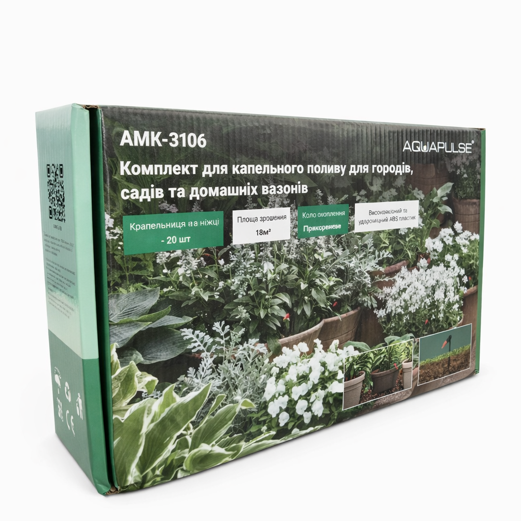 АМК-3106 стане вдалим вибором для власників городів, садів, домашніх рослин і невеликих зон вирощування, які хочуть купити готовий комплект крапельного поливу без окремого підбору всіх деталей. Це практичне рішення для тих, хто хоче перейти від ручного поливу до більш стабільного, економного та точного зволоження.
